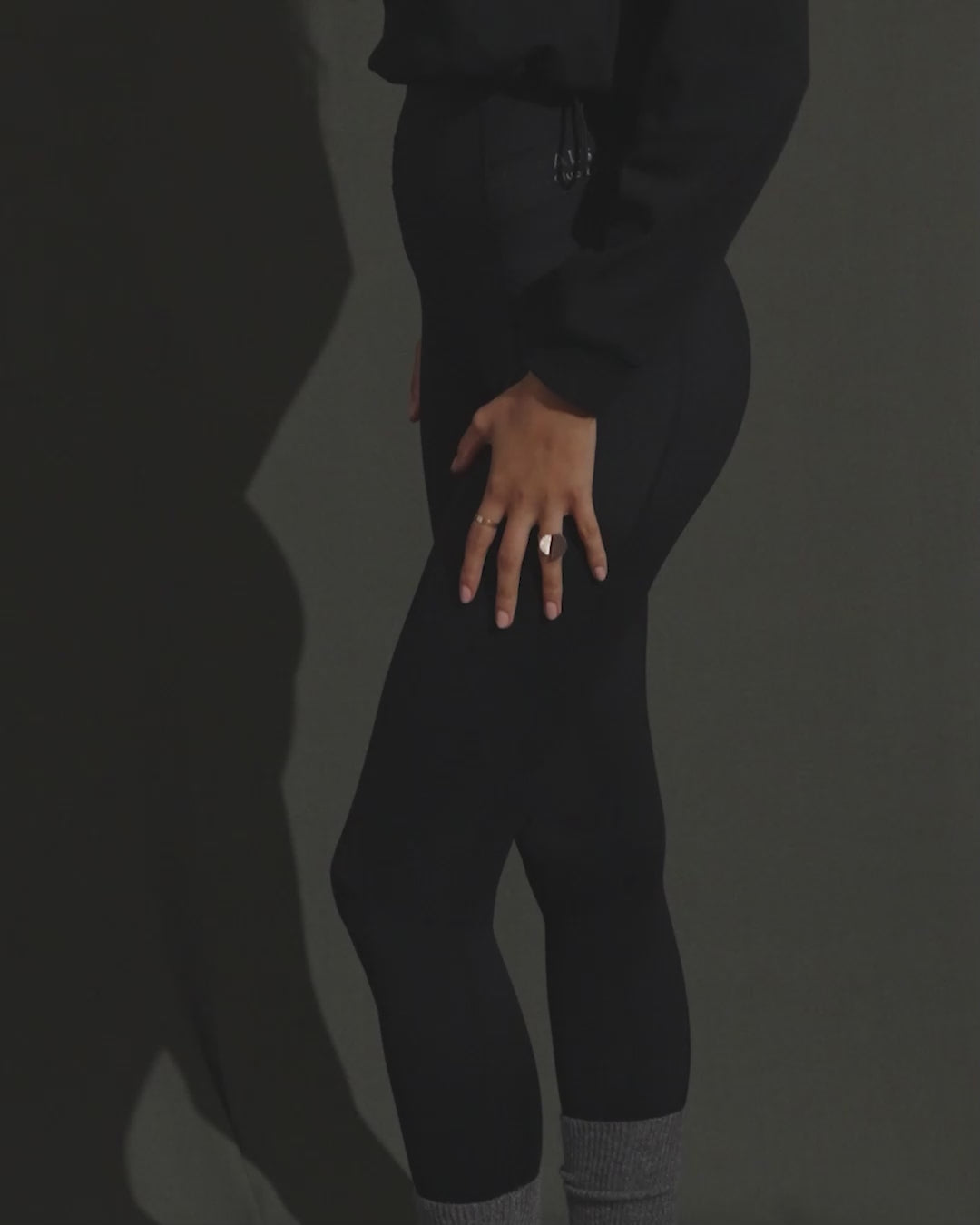 Ankle length with seamless side pocket for on-body essentials.